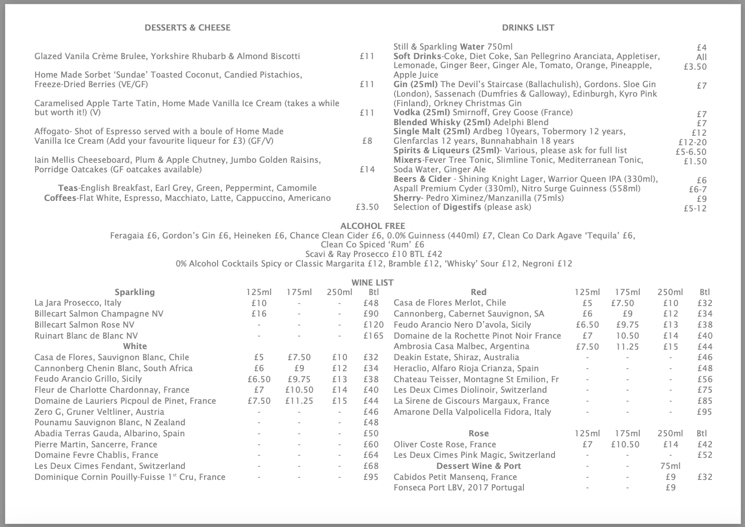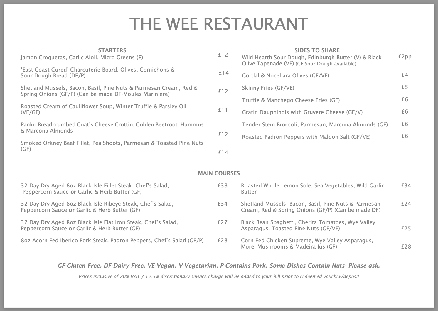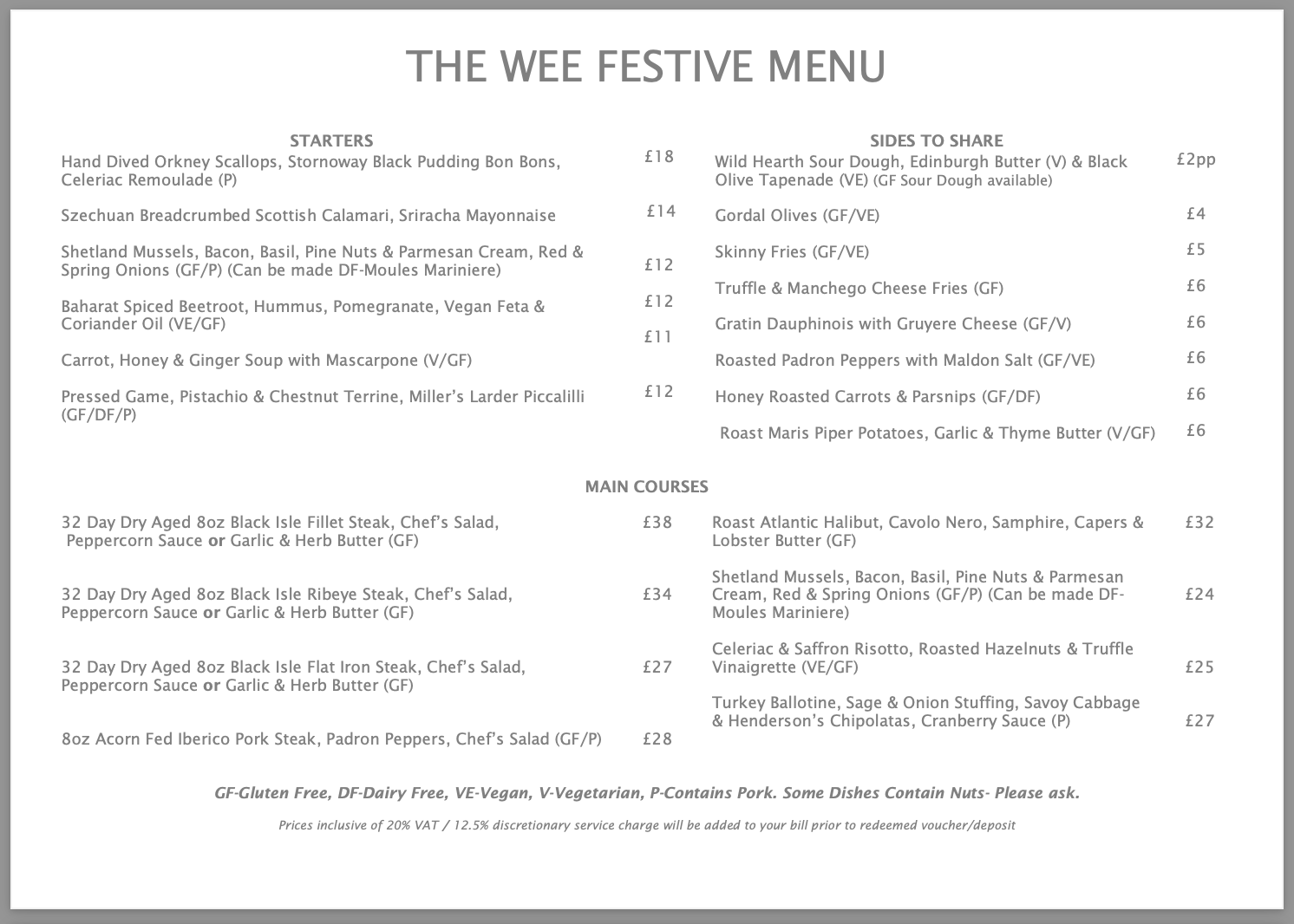 If you have any questions about the menu please email the restaurant prior to booking on fife@theweerestaurant.co.uk.